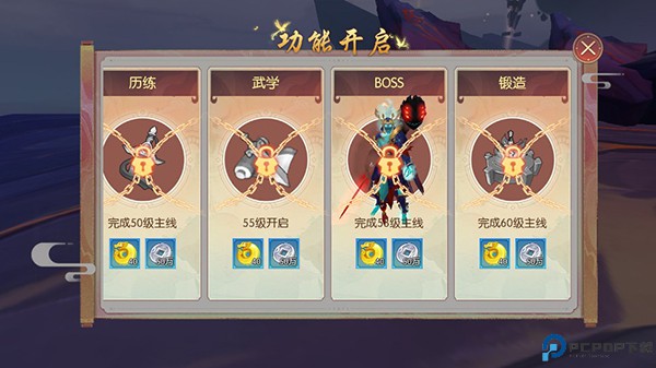 6、此外,通过提升等级和完成主线,可以解锁历练、武学、boss等丰富玩法,领取奖励,体验更佳。