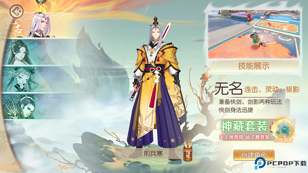1、玩家进入游戏后可以在无名、殊华、雪芽、赤阳四种职业内选择喜欢的开始游戏。