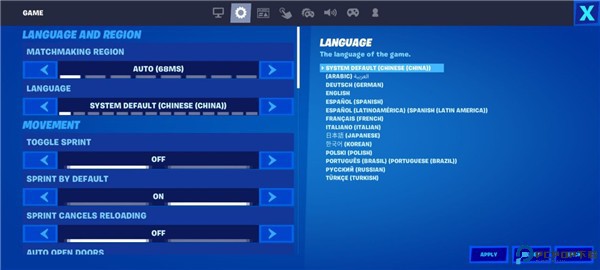 3、第二个选择选择中文,再点击右下角最左边的应用即可切换为中文语言。