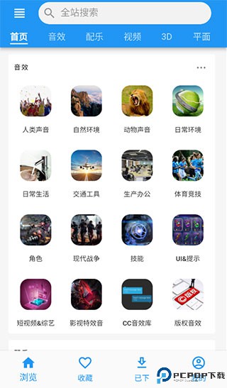 2、可以直接在顶部的搜索框搜索想要的资源,也可以滑动查看其他分类,查找更全面。