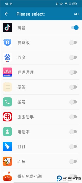 2、进入软件点击Select apps选择好你需要添加在灵动岛上的应用,点击右上角ALL可一键选择。