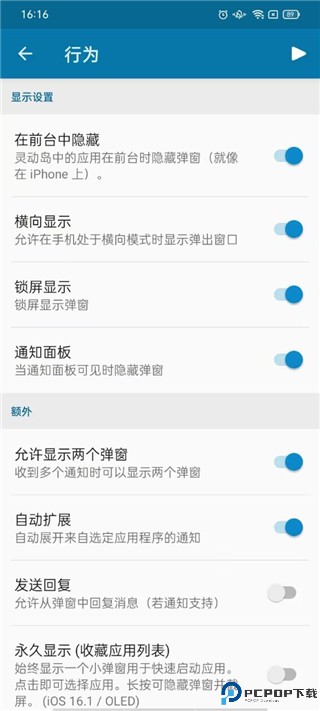 7、iPhone的灵动岛是不能定制的,但dynamicSpot是可以的,你可以改变互动设置,选择何时显示或隐藏弹出窗口或哪些应用程序应该出现。