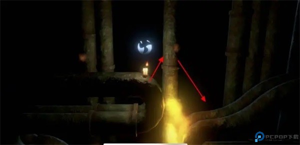 第2根在起点处直走即可,按住不动即可点燃蜡烛。点燃完第二根蜡烛接着往右走,是个铁链,顺着铁链上去,右拐就是第3根蜡烛,点燃。