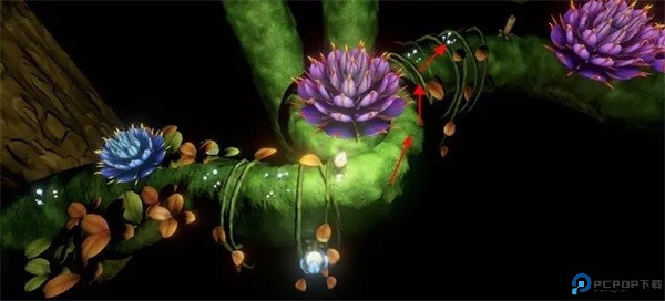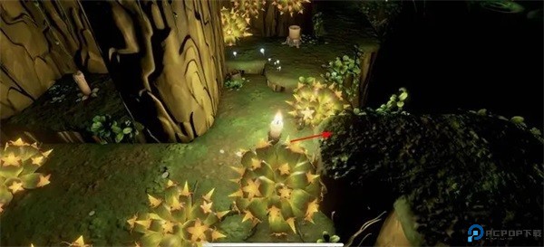 第四章的隐藏蜡烛有2根第四章第一节,点击屏幕右边燃烧蜡烛的同时点亮小蘑菇,跟随小蘑菇发光的线路,这里躲着个小蜡烛哦
