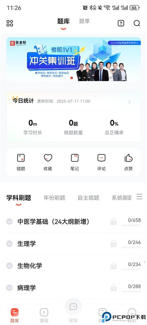 2、进入“题库”,在这里你可以根据学科刷题、年份刷题或是系统刷题来挑选适合自己的刷题内容
