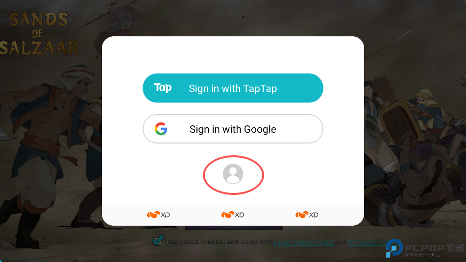 2、选择下方的“头像”标识的游客登录。