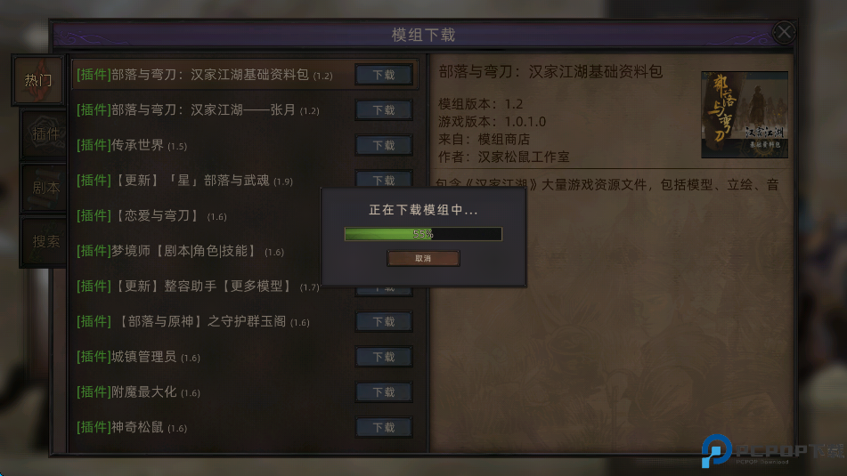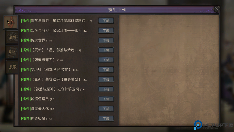 2、点击中间的“模组下载”。