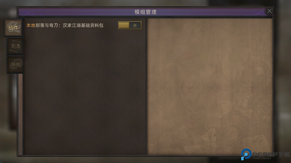 1、点击屏幕右侧的“游戏模组”。
