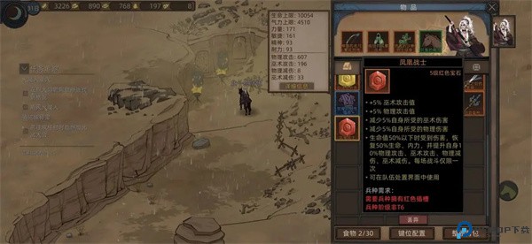 在图中,我的剑豪只带了一个大红药,进入战斗,假如此时我被敌人打残,那么此时我可以按下药品的快捷键,然后在战斗中打开背包,可以看到所有部队都停止了行动。