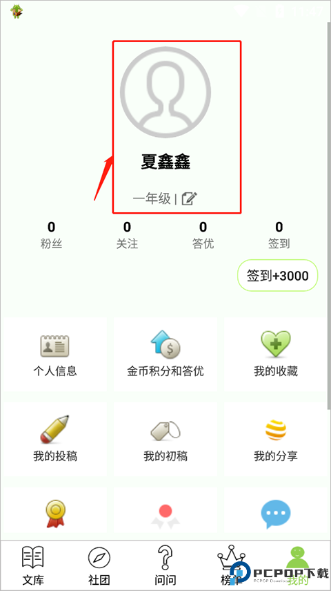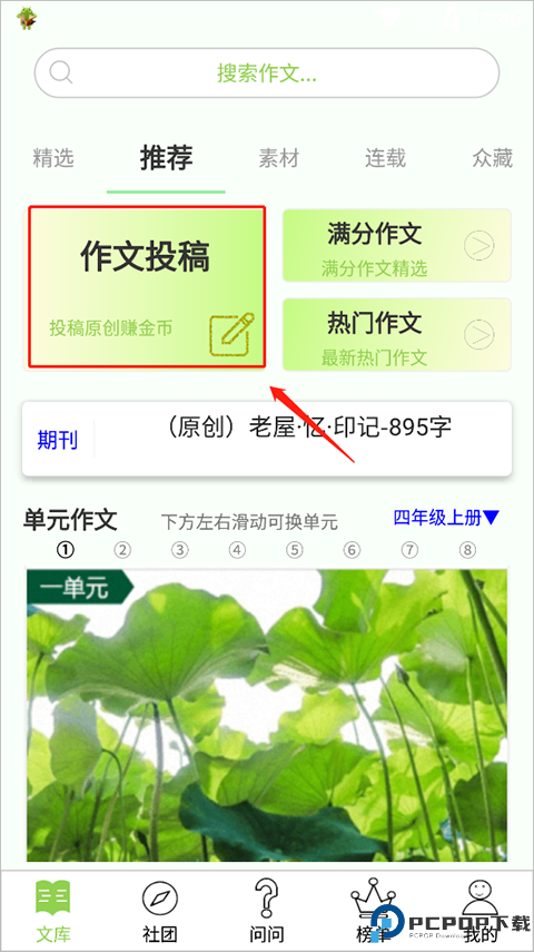 3、这个时候就可以回到“文库”页面,选择“作文投稿”。