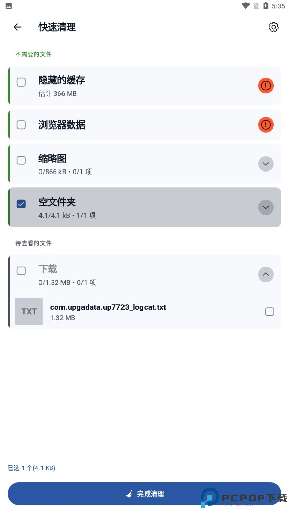 2、用户可以勾选自己想要清理的文件,点击下方的【完成清理】。