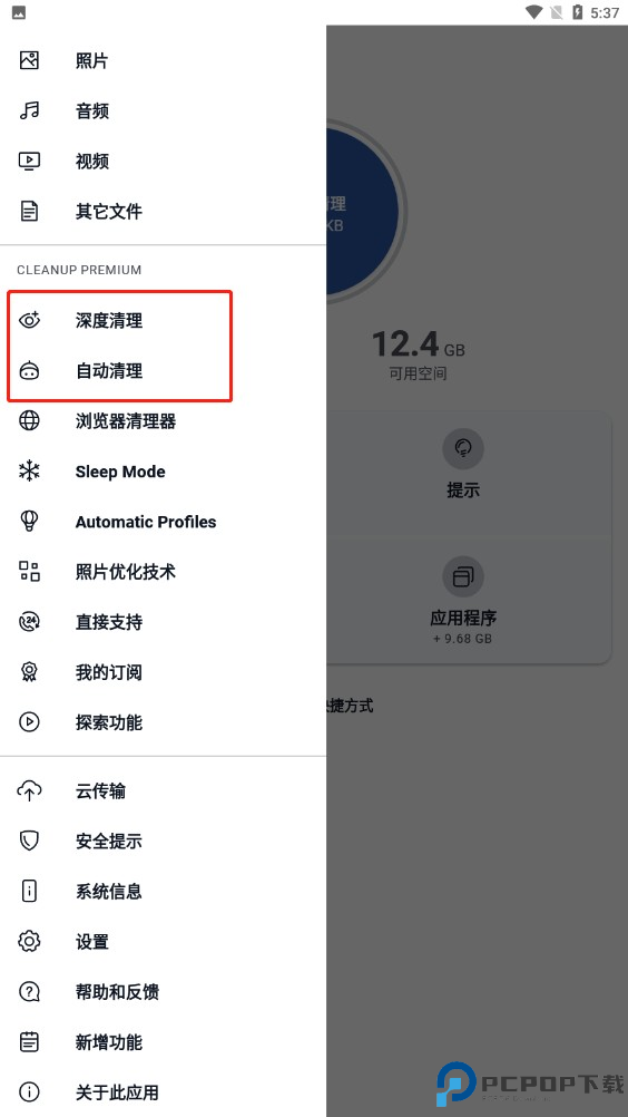 4、用户还可以深度或者自动清理手机,首先我们点击首页左上角的三条横线,然后点击深度或者自动清理就可以。