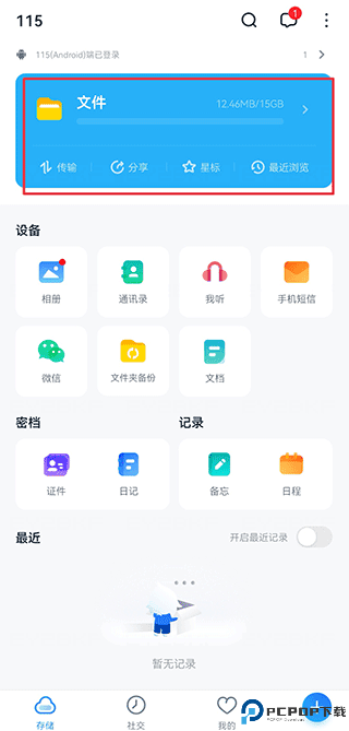 1、下载并且打开app,在储存界面中点击「文件」,进入文件列表。