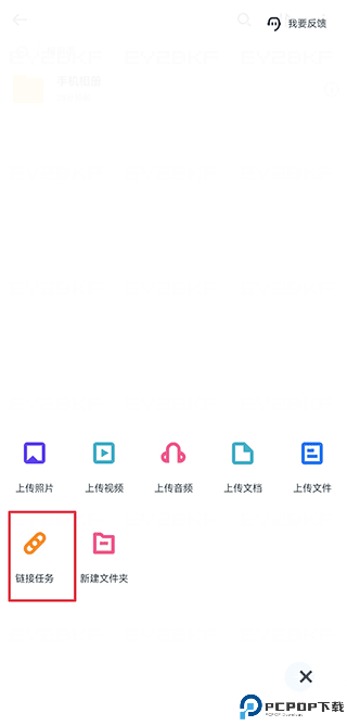 2、在文件列表页面下方点击「+」号,选择链接任务。