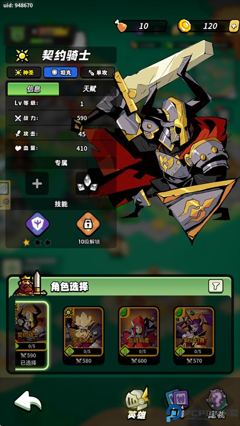 契约骑士(T0级),能扛能打,30级解锁眩晕。(新人可以白嫖10级,详情资源篇会出。)