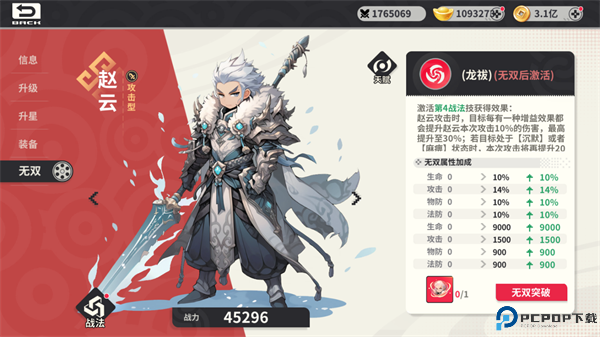 玩家31级后,武将即可开启无双突破,消耗武将专属无双石,可以对武将进行大幅度的数值加成,同时解锁其专属被动效果