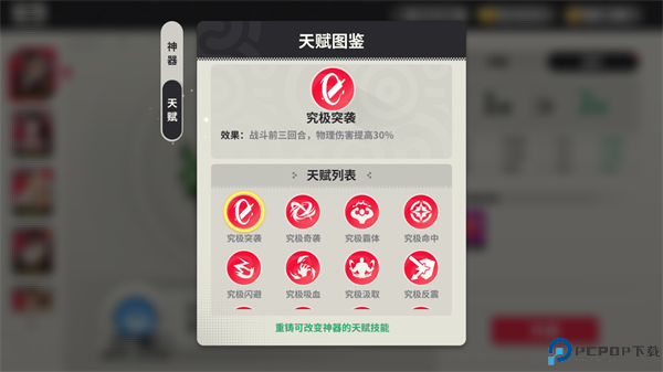 游戏内有八个不同的神器,每个神器提供的效果都不一样,主公可根据自身阵容选择搭配,神器会佩戴天赋技能,可通过重铸改变神器的天赋技能。