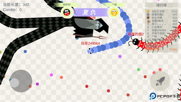 4、小心!当你的蛇头碰到其他贪吃蛇的身体时就会死亡,并且产生大量小豆豆;