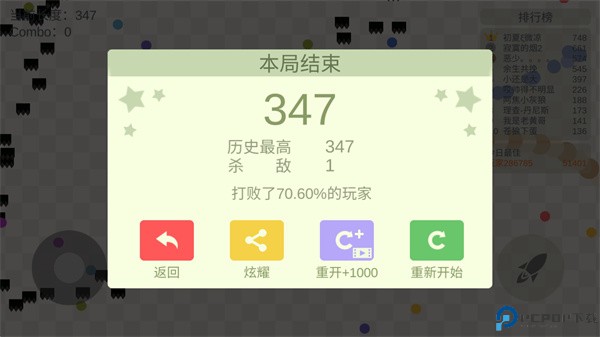 6、随着你结束本局,会显示你的历史最高记录和杀敌数,不停的成长打破你的记录吧;