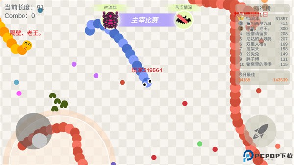 3、抢分期:依然是大混战,不同之处在于蛇蛇们死亡会掉落更多的能量,而疯狂得争夺能量会导致连锁死亡,变的满地都有能量吃!这个时候就不需要去找人杀了,只要坐等别人自相残杀,将掉落一地能量收入囊中大赚一票就好!