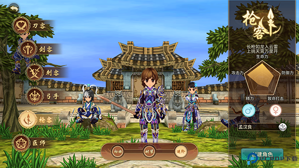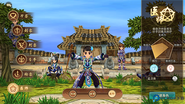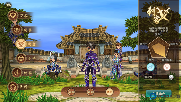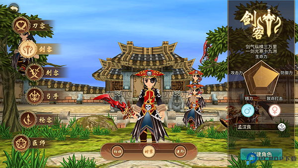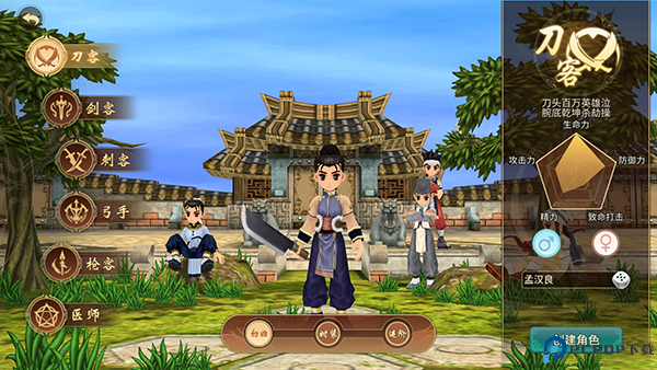 多职业体系:提供剑客、刀客、医师、弓手、客等经典武侠职业,每个职业拥有独特的技能树与战斗风格。