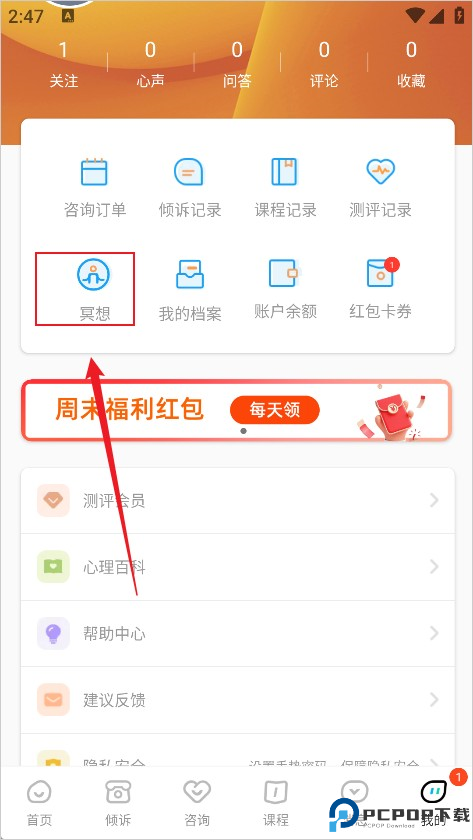 辅助功能丰富:包含心理测试、冥想音频、心理课程等扩展服务。