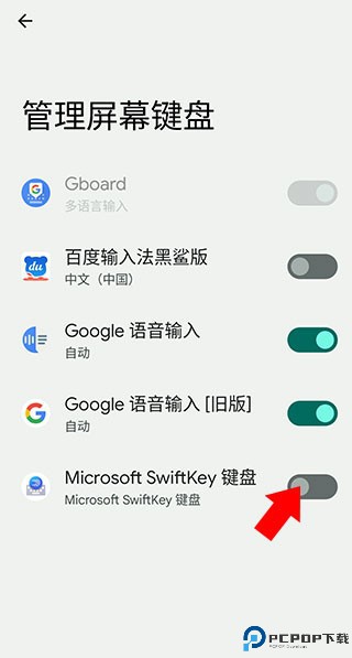 2、点击之后来到下方界面,找到并打开微软输入法后方的开关