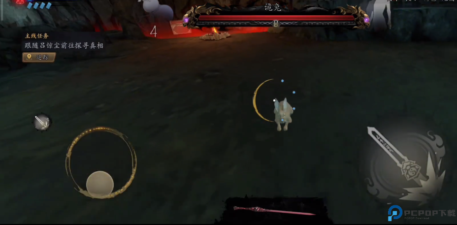3、玩家需按照引导进行操作,左侧轮盘控制角色移动,右侧则为攻击等键位;
