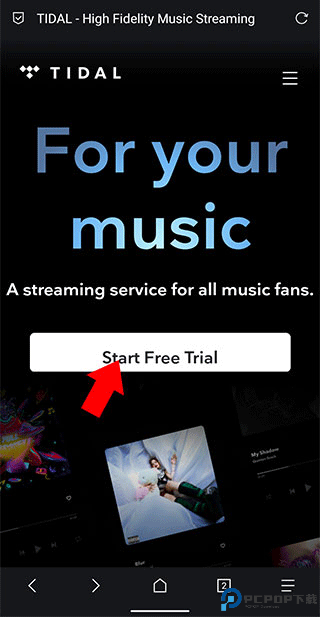 1、首先需要先至官网(tidal.com)注册tidal账号,来到官网后点击start free trial按钮(注册过程中需要ip非国内)