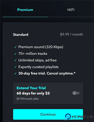 Tidal 提供试用期,试用结束后需订阅付费才能继续享受完整功能。