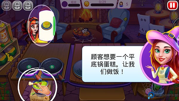 3、现在我们按照顾客需求制作平底锅蛋糕,制作好之后点击它即可盛盘。