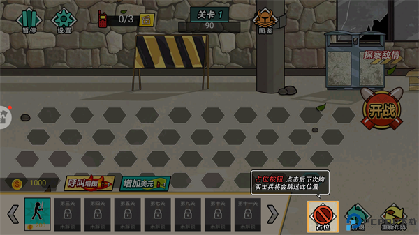 3、点击占位按钮,在下次购买士兵将会跳过此位置。