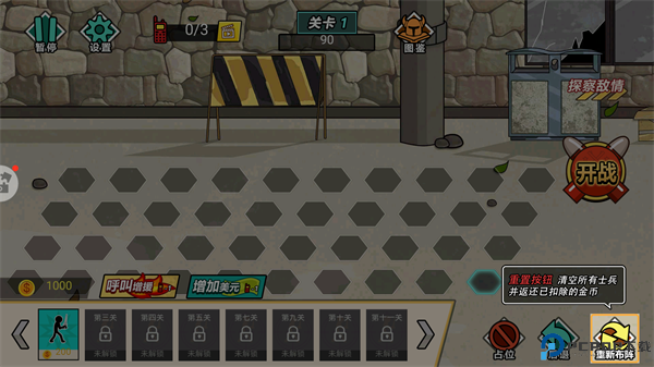 5、点击重置按钮可以清空所有士兵并返还已扣除的金币。