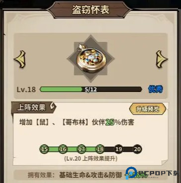 对于计时器类圣物,盗贼怀表是绝佳选择,可增强鼠类与哥布林类伙伴的攻击效果。鼠类伙伴增加攻速,而哥布林类伙伴则强化反击能力,让魔弓手更具灵活性与压制力。