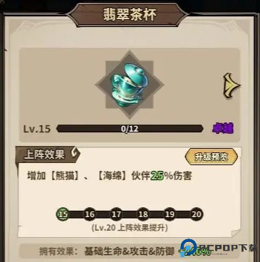 容器类装备中,翡翠茶杯尤为适配,能够大幅提高海绵类伙伴的暴击伤害,完美契合魔弓手单点高爆发的战斗风格。