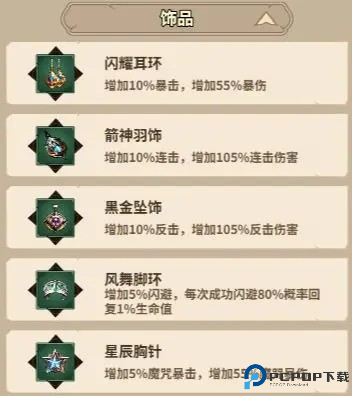在游戏初期,建议魔法师选择闪耀耳环提升暴击能力,加快推图效率。后期当属性成长完备时,推荐使用风舞脚环增加闪避值,增强生存能力以便获得更多输出机会。