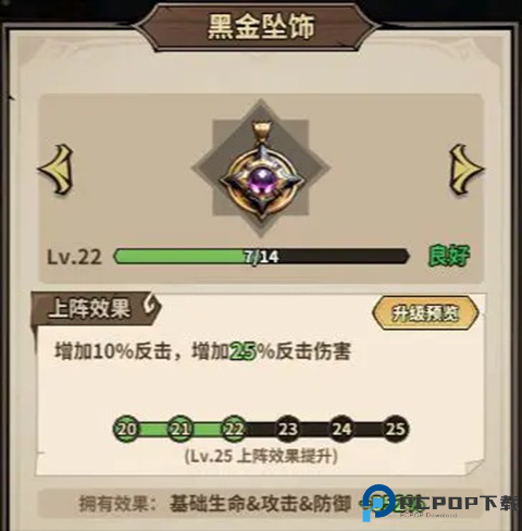 黑金坠饰,可以提升反击属性,同时拥有还能提升基础生命&攻击&防御,非常符合魔战士的职业特点