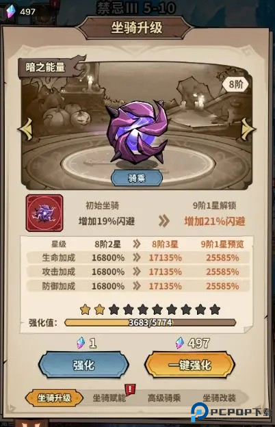 1、通过消耗七彩石来强化坐骑等级,不仅能够提升坐骑的生命、攻击及防御数值,还能进一步增强整体战力。