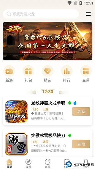 2、首页页面,你可以查看新游榜单,游戏礼包,游戏精选,游戏排行,交易处理;