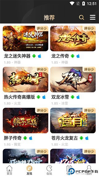 3、发现页面,可以查看游戏推荐,通过游戏的评分的高低来选择你畅玩的游戏;