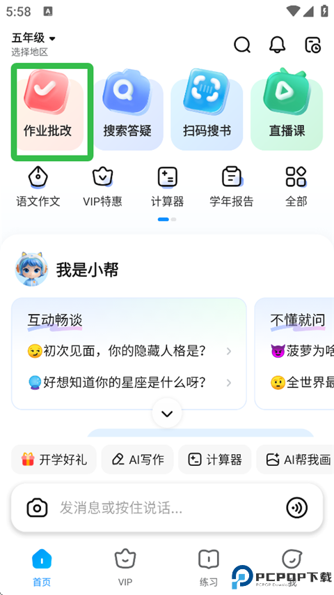 1、进入作业帮app,点击【作业批改】。