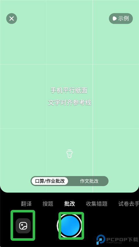 2、用户可点击下方中间蓝色按钮现拍作业图片,也可先拍好然后点击左边图标上传图片。