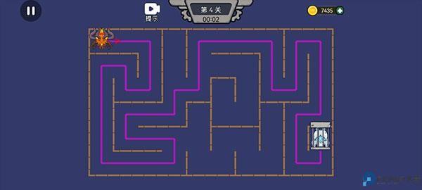 2、通过点击箭头移动人物,躲避障碍物,通过机关,拿到宝石。