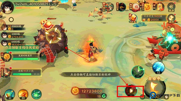 2、攻击有几率触发致命一击,触发后怪物立即被击败,并且获得妖灵奖励。怪物倍数越高,妖灵奖励越多,但是也越难触发致命一击。