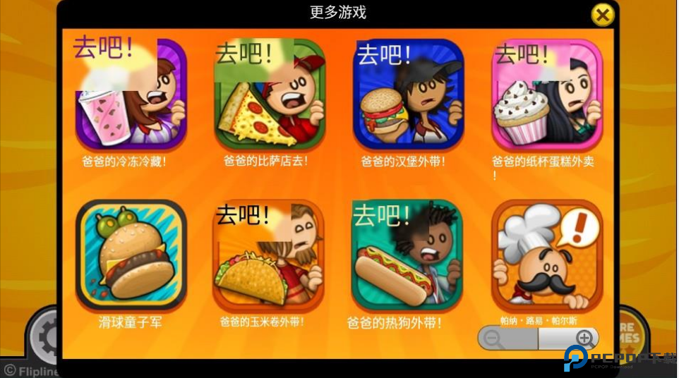 2、点击主页面的右下角【MORE GAMES】更多游戏,你在此可以任意选择,都是和老爹奶酪店差不多类型的游戏