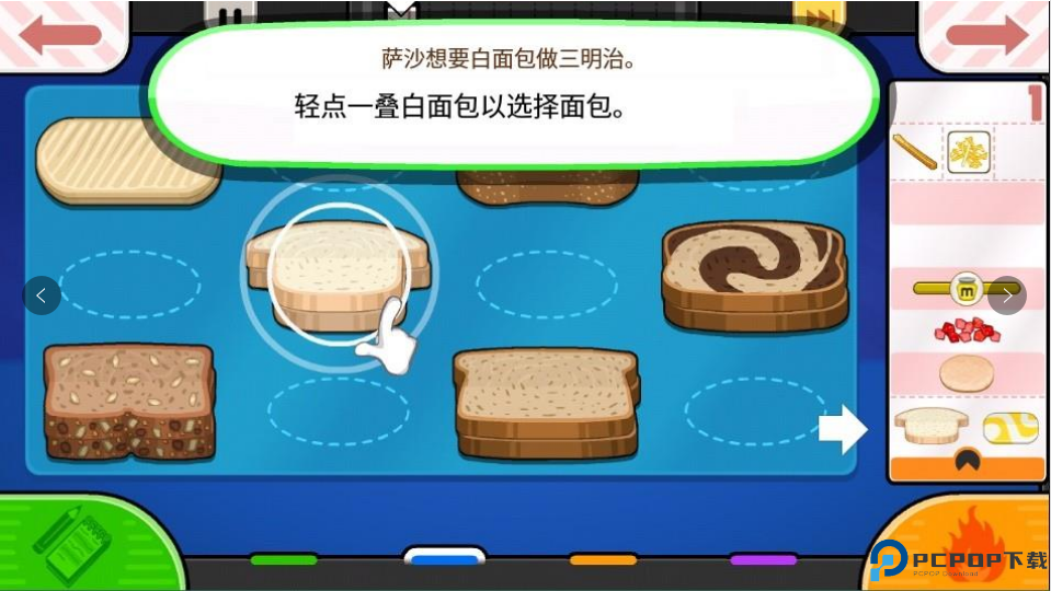 6、顾客萨沙想要白面包做三明治,点击屏幕白面包