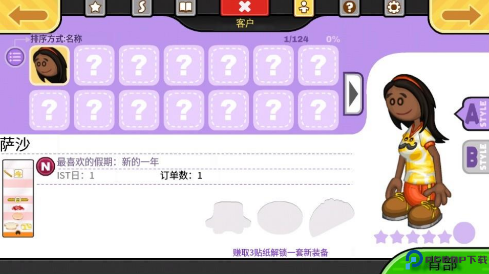 3、如图所示,解锁玩图片所示即将获得全部贴纸,想换什么服饰就可以随心所欲啦!