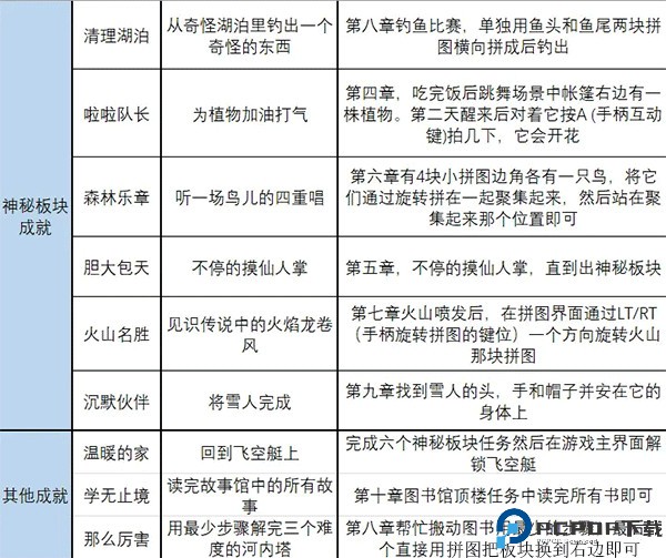 9、温暖的家:收集齐6块神秘版块,然后在游戏开始界面选择【神秘版块】,解锁飞空艇。