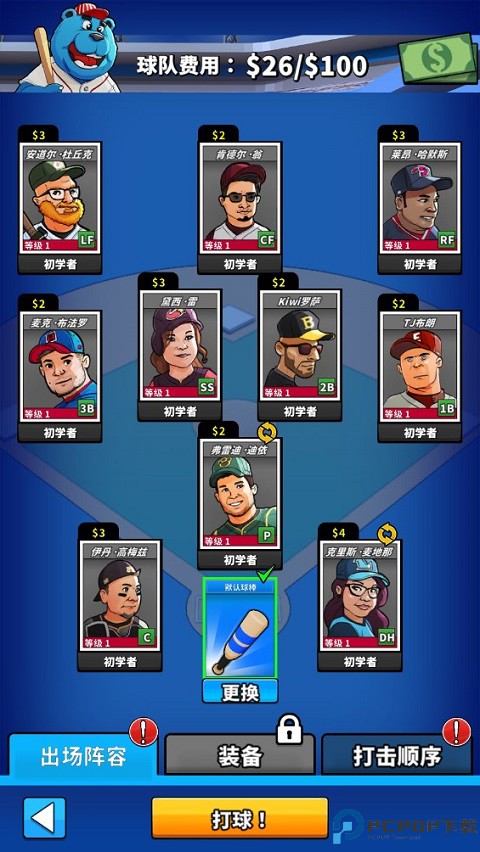 6、每场比赛开赛前,你都可以在这里更换球员并装备球棒!