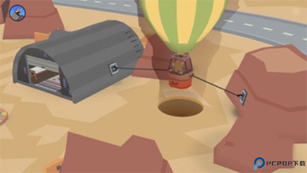 2、刚开始的几关都比较简单,后面的关卡会出现使用道具、将黑洞放置到合适的位置才能通关的情况。比如说Potter's Rock这一关(如图),需要吞噬火堆以后,将黑洞放置在热气球下面一阵时间,把热气球烤红以后,才会进入下一个场景。